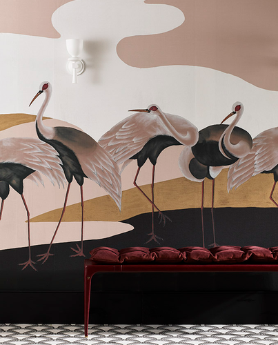 Created on a range of silk grounds without embroidery or figurative painting, these wallcoverings can be used as plains or as backgrounds for our designs. Craft techniques abound, from gilding to lacquer finishing, with unique dyes, metallic washes and traditional techniques adding depth and variety.