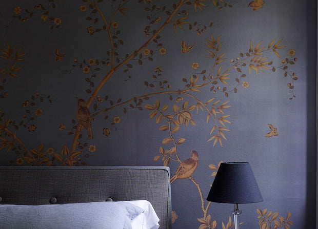 In 2024, a redundant selection of our hand-painted, embroidered silk wallcoverings were revived and reinvigorated for the catwalk! Eminent fashion designer Harris Reed—who opens this month’s London Fashion Week—repurposed the panels for his SS24 couture collection.