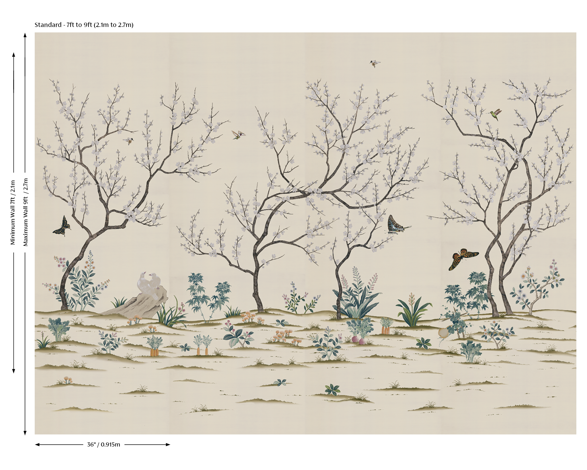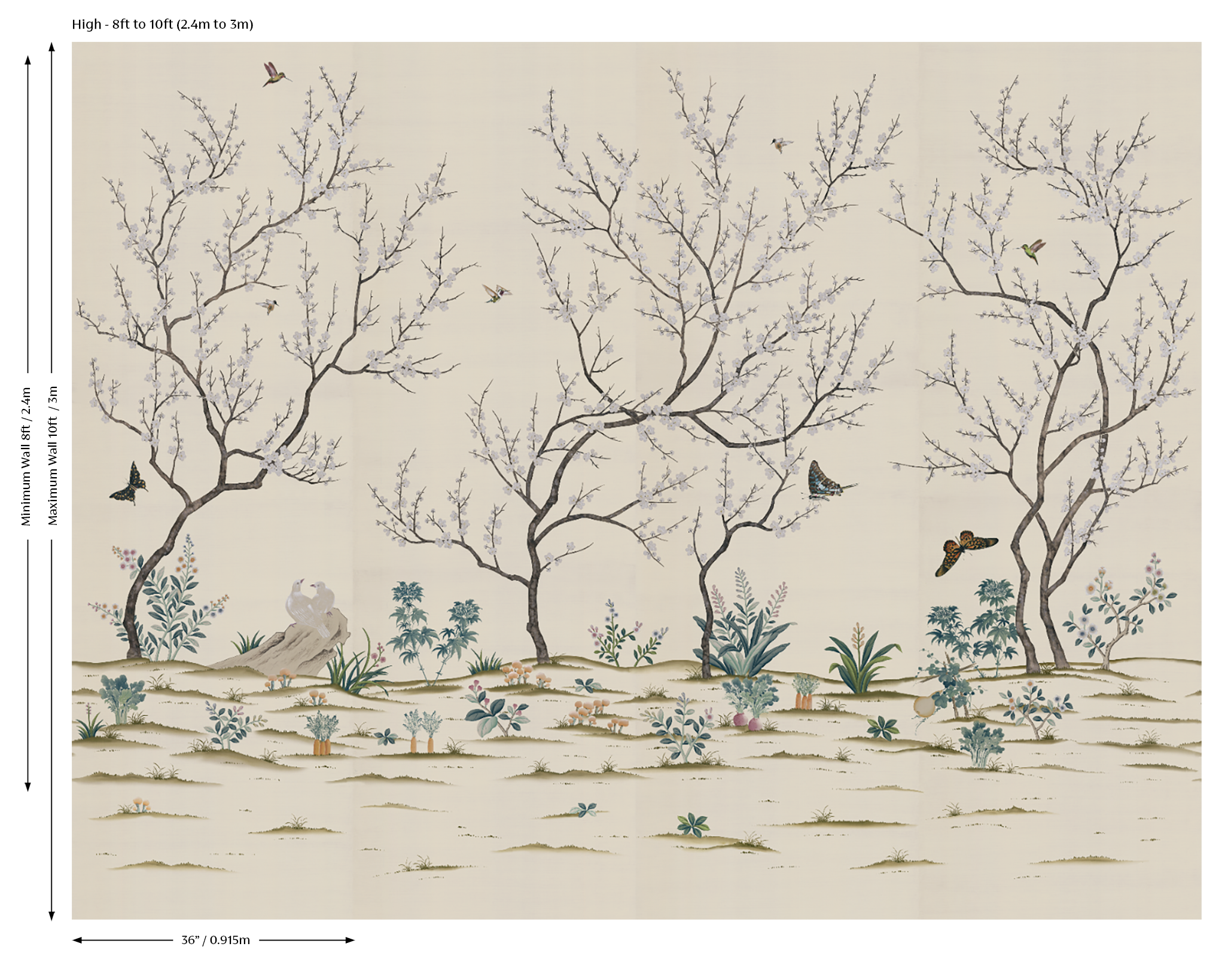 This wallpaper is printed on hand brushed paper. All our printed designs originate as hand-painted, full-scale works of art. We scan the completed paintings in super-high resolution before preparing them for print.