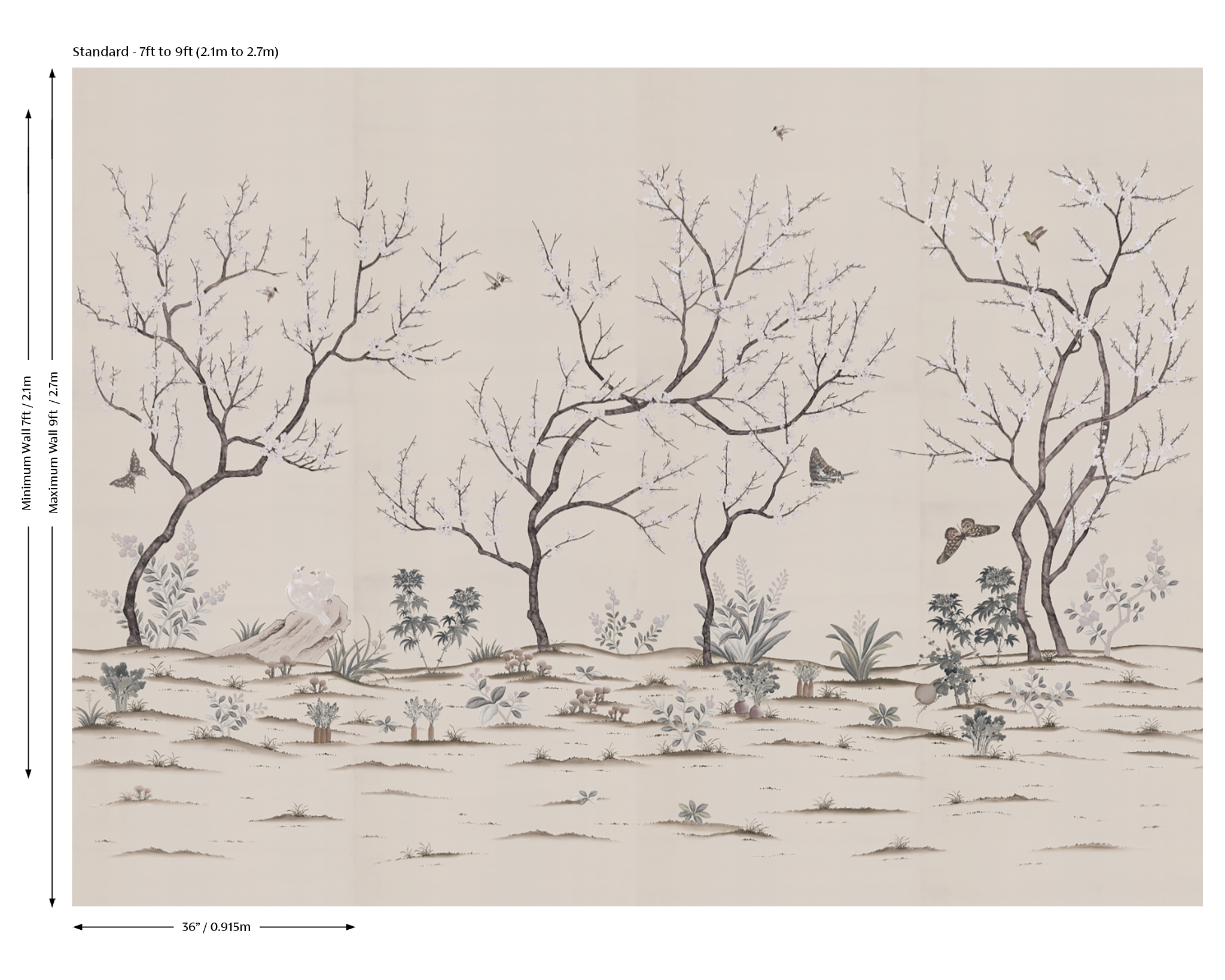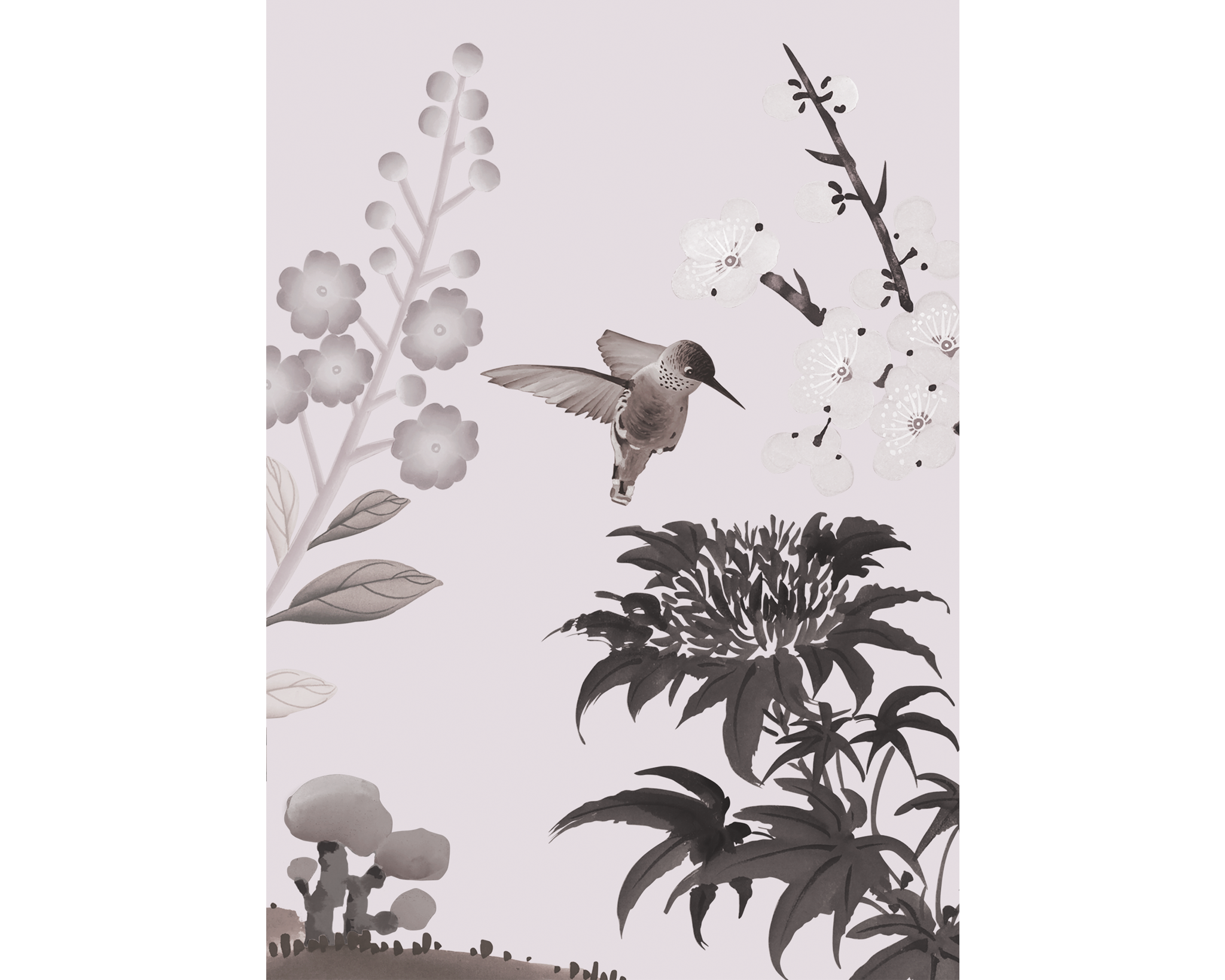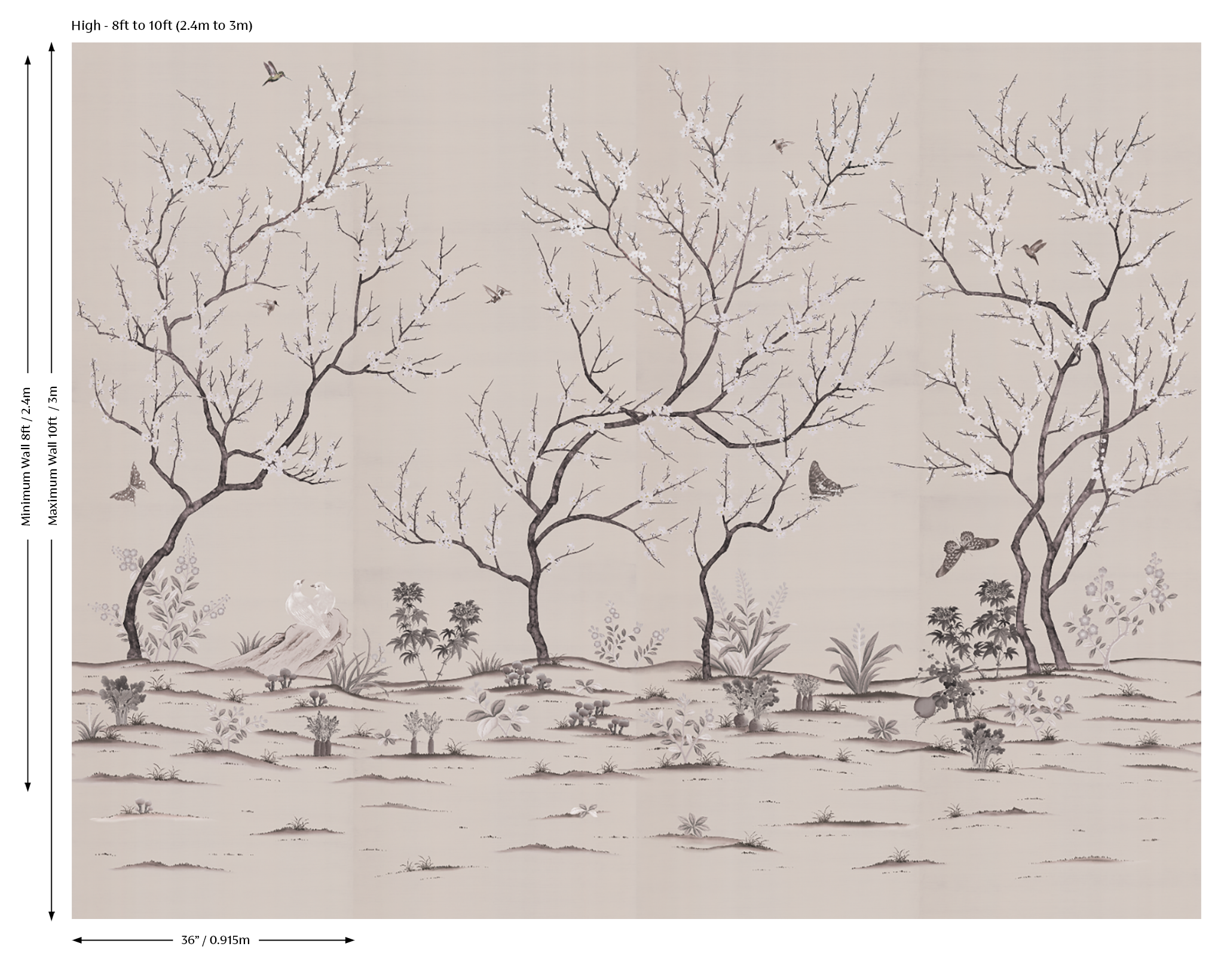 This wallpaper is printed on hand brushed paper. All our printed designs originate as hand-painted, full-scale works of art. We scan the completed paintings in super-high resolution before preparing them for print.
