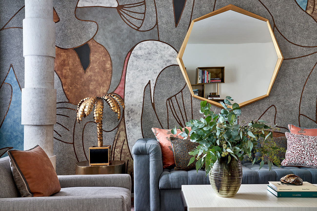 Envisioned by interior designer Natalia Miyar, and printed and hand-foiled by Fromental’s artists in the UK, the initial expression for the Ambia wallcovering collection was drawn from surrealism and cubism master Wifredo Lam’s strikingly coloured painting, La Jungla.