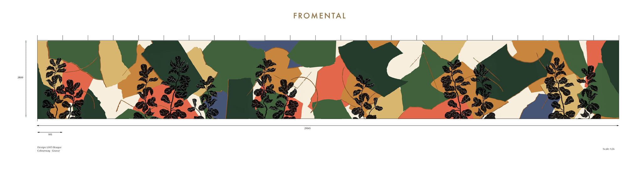 The boldest of our three Braque colourways, Grasse mixes greens, yellows, pink and white with metallic gold touches to capture the light.