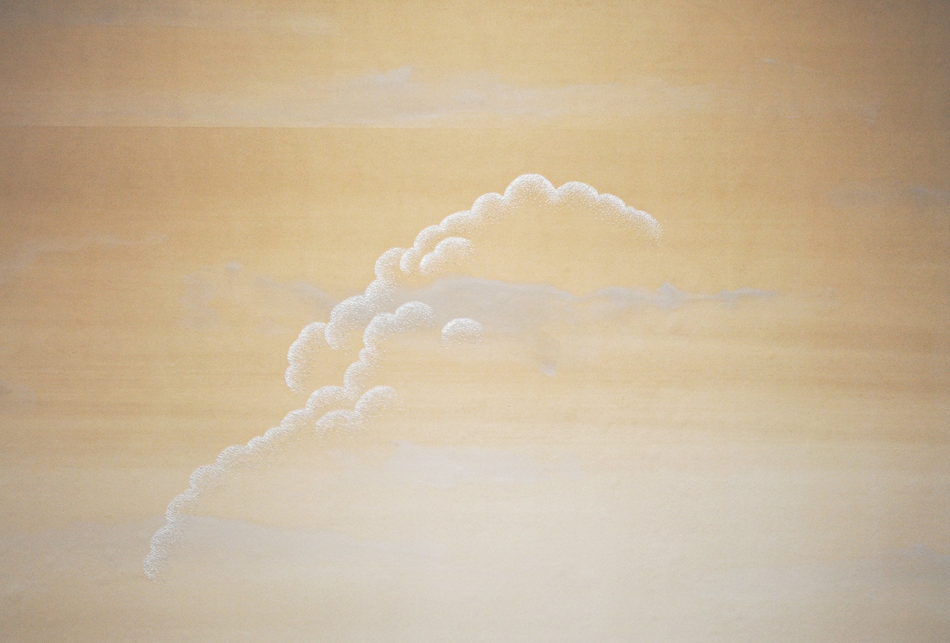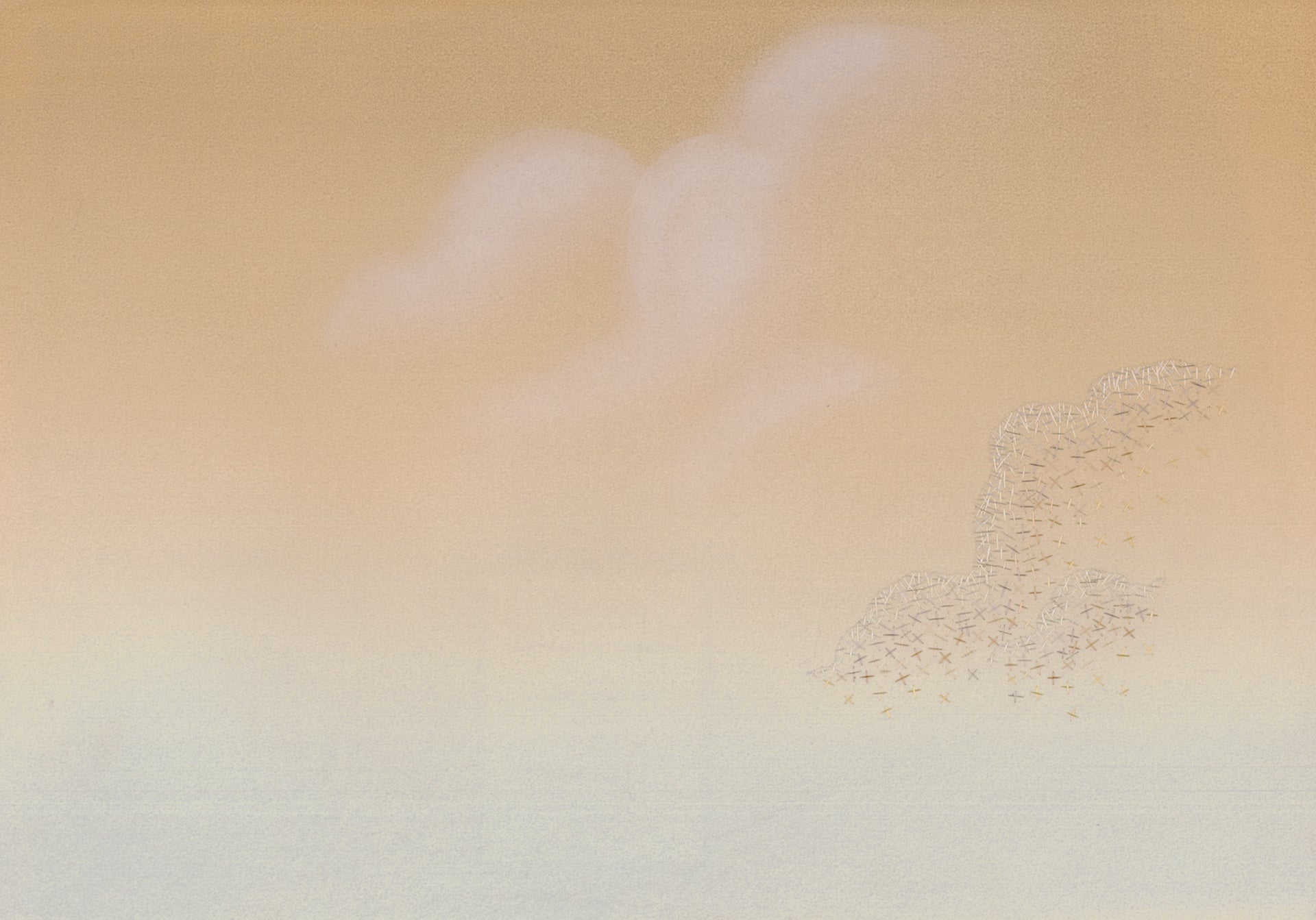 The open sky felt particularly poignant at a time when we were craving an escape route and so the premise for our second design was formed. Clement is a minimalist cloudscape set across a light, gradated background, the clouds highlighted with cross-stitch embroidery to show where the sunlight might hit them.