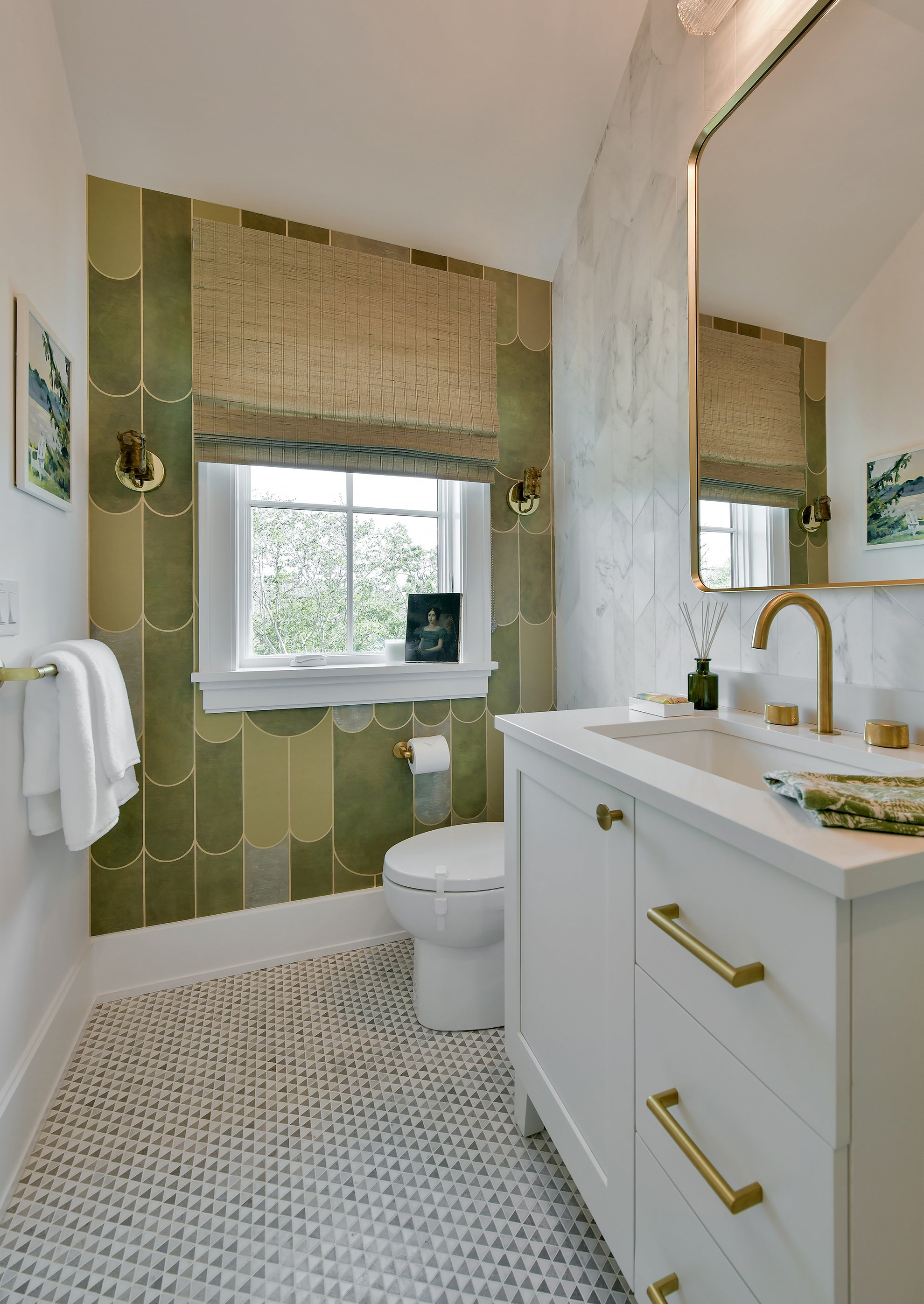 In a nod to the decadent era of Art Deco, blocks of colour are overlaid with varying intensities of pooled paints, within metallic scalloped edges.