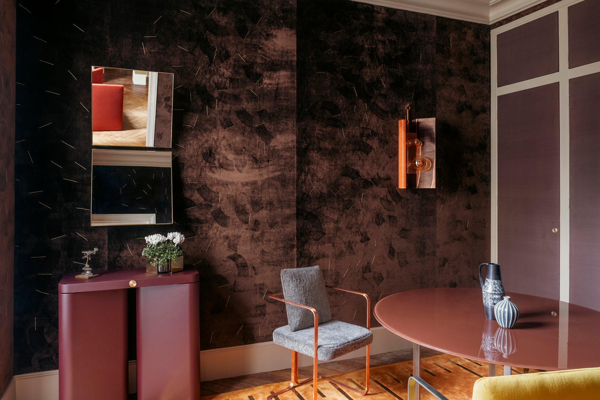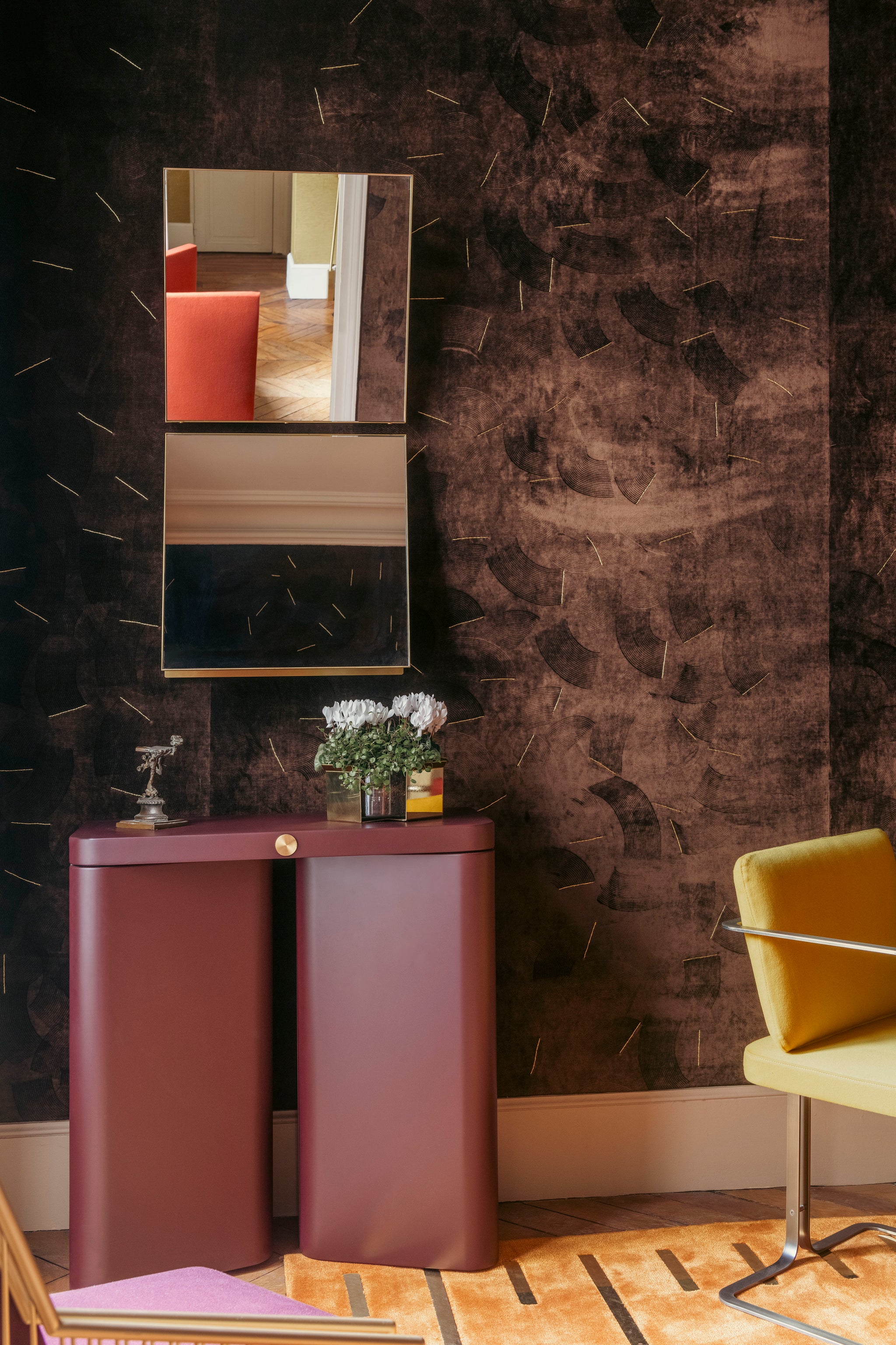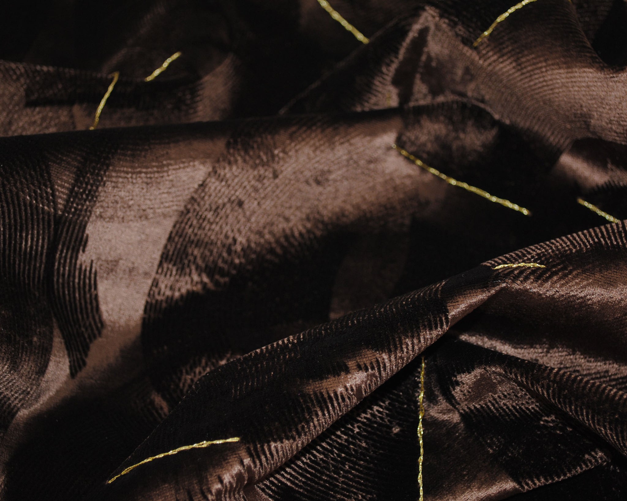 Available in four colourways, each one named after a horse coat colour, Equus showcases the opulent nature and textural possibilities of fine Italian velvet. In our dark brown Italian Velvet, Bay captures the light to reveal an array of rich tones and features gold embroidery.