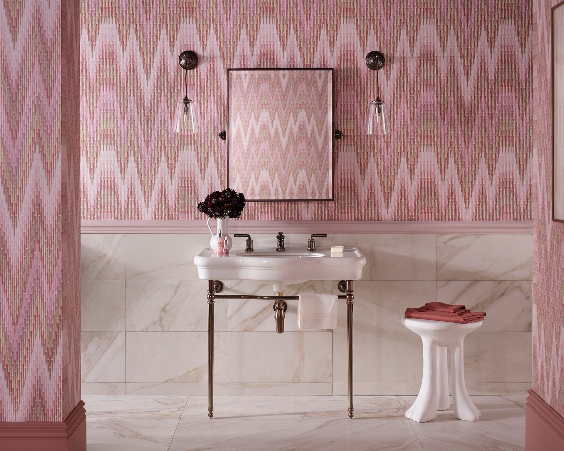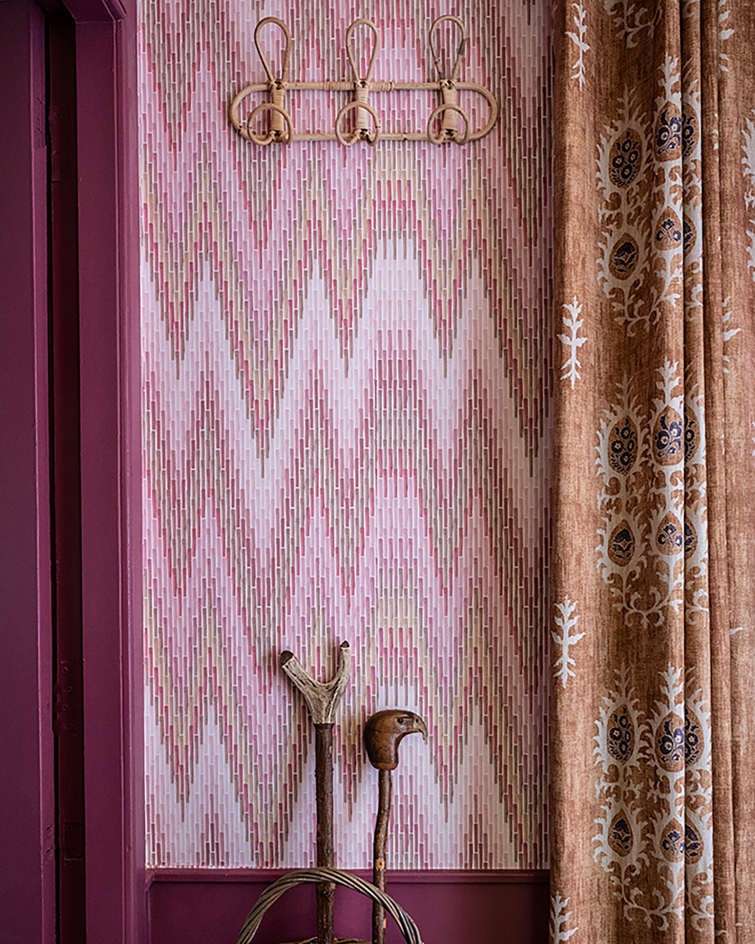 Through the centuries, flame stitch – in its various shapes, scales and colours – has been expressed in many mediums, from embroidery to needlepoint. It has always injected a flamboyant and dynamic visual punch to an interior.