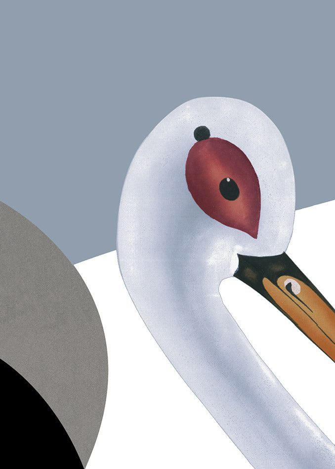 Fabled to live for thousands of years, cranes are a symbol of good fortune and eternal youth. A modern take on the Rinpa School style, Flock is a captivating scene of majestic cranes elegantly dancing across the room.