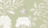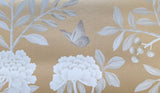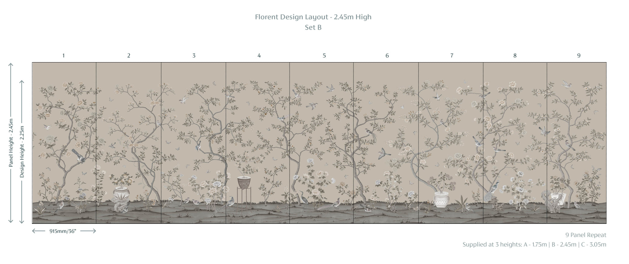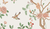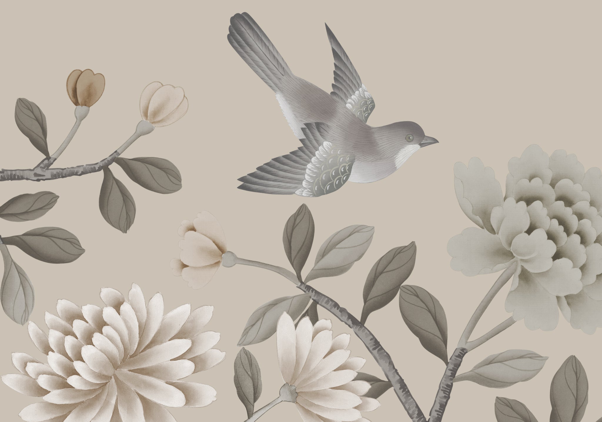 Inspired by classical bird and flower chinoiseries, this design creates the feeling of a walled garden planted with fruiting and flowering espalier trees.