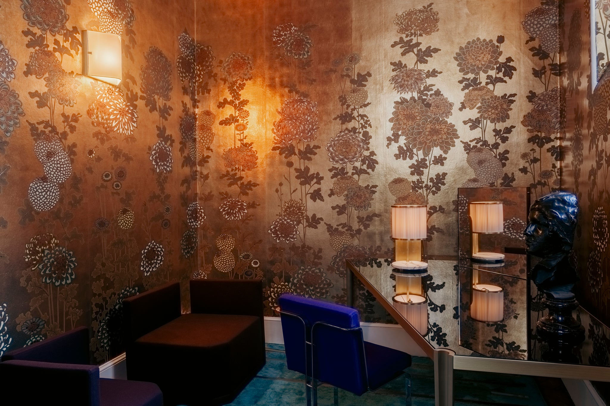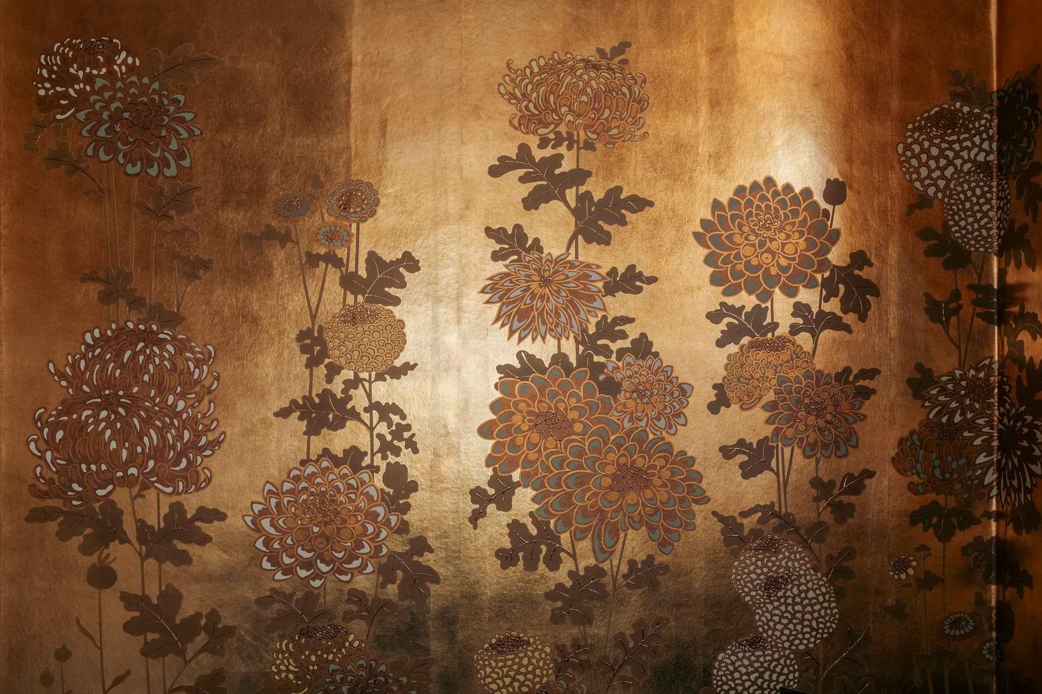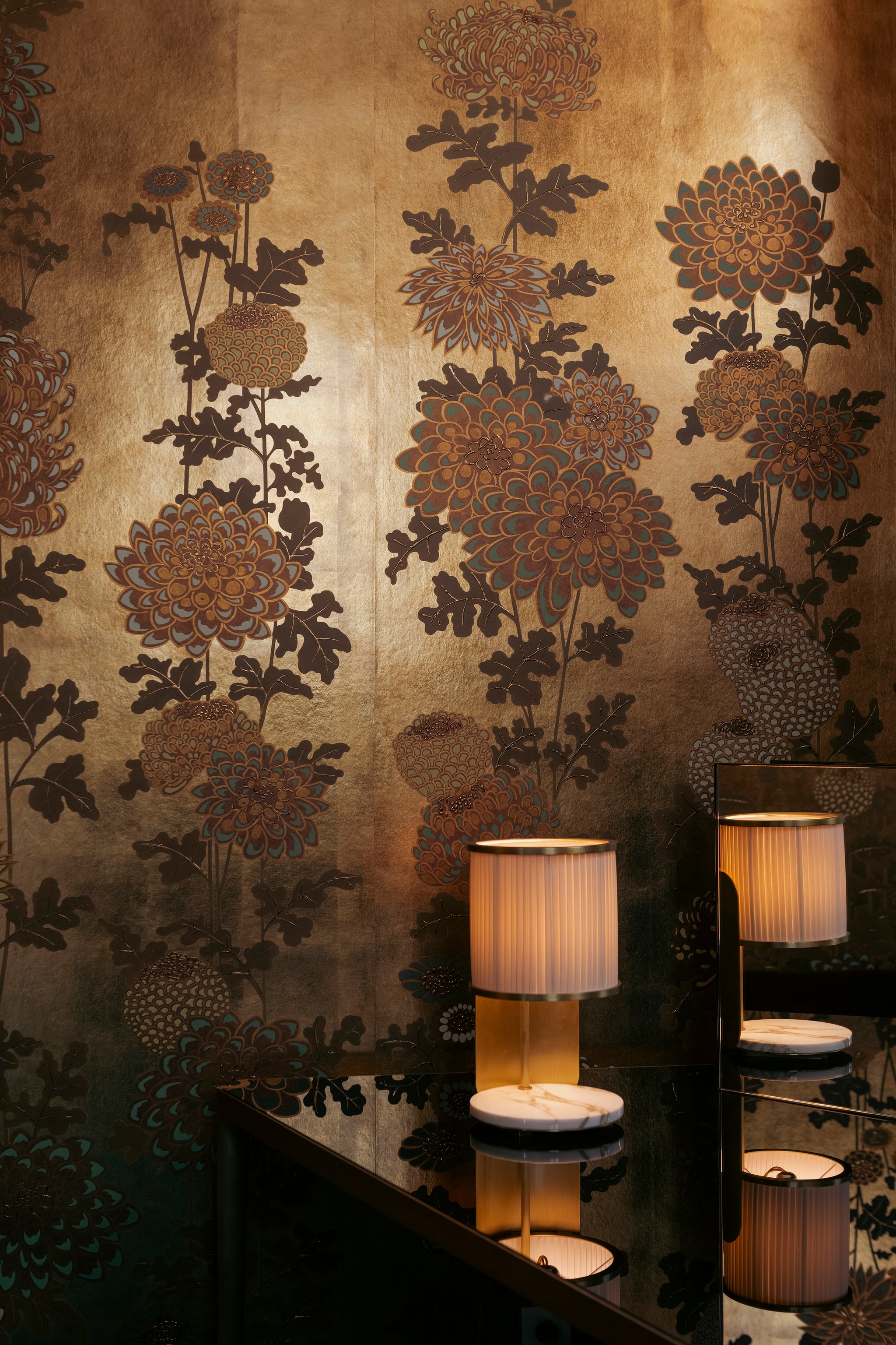 Kiku Garden is an elegant, graphic, and highly decorative wallcovering design inspired by the art of Japan and Europe’s enduring fascination with it. It shares much in common with our Kiku wallcovering—the boldly rendered chrysanthemums, the block colouring—but forgoes the crisp, screen-printed borders of the original. The result is a hugely versatile design that works beautifully in all manner of spaces.