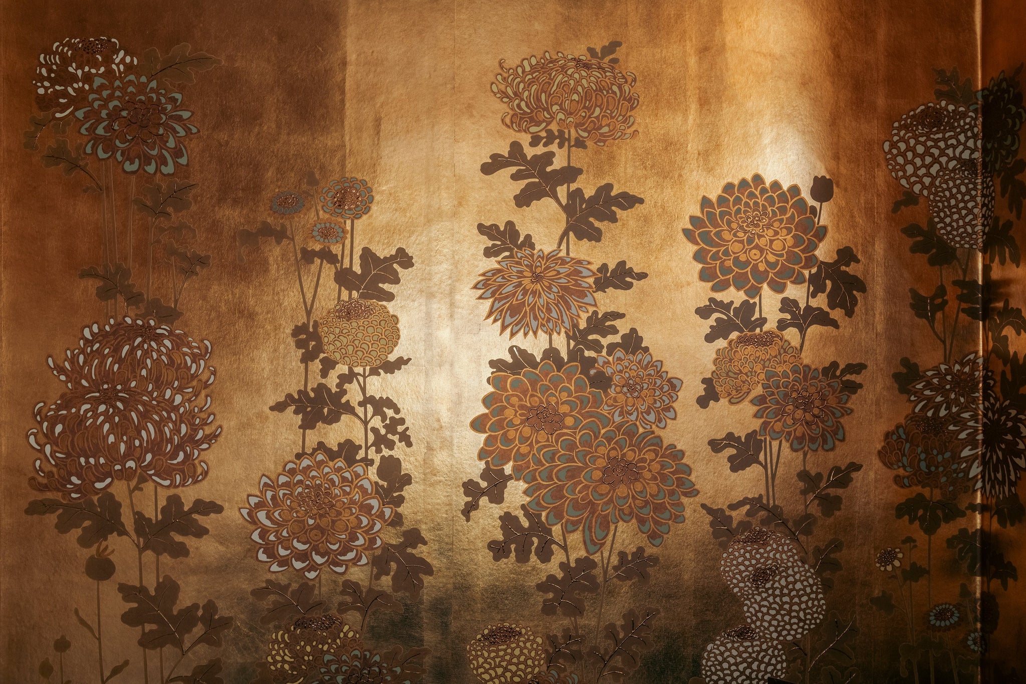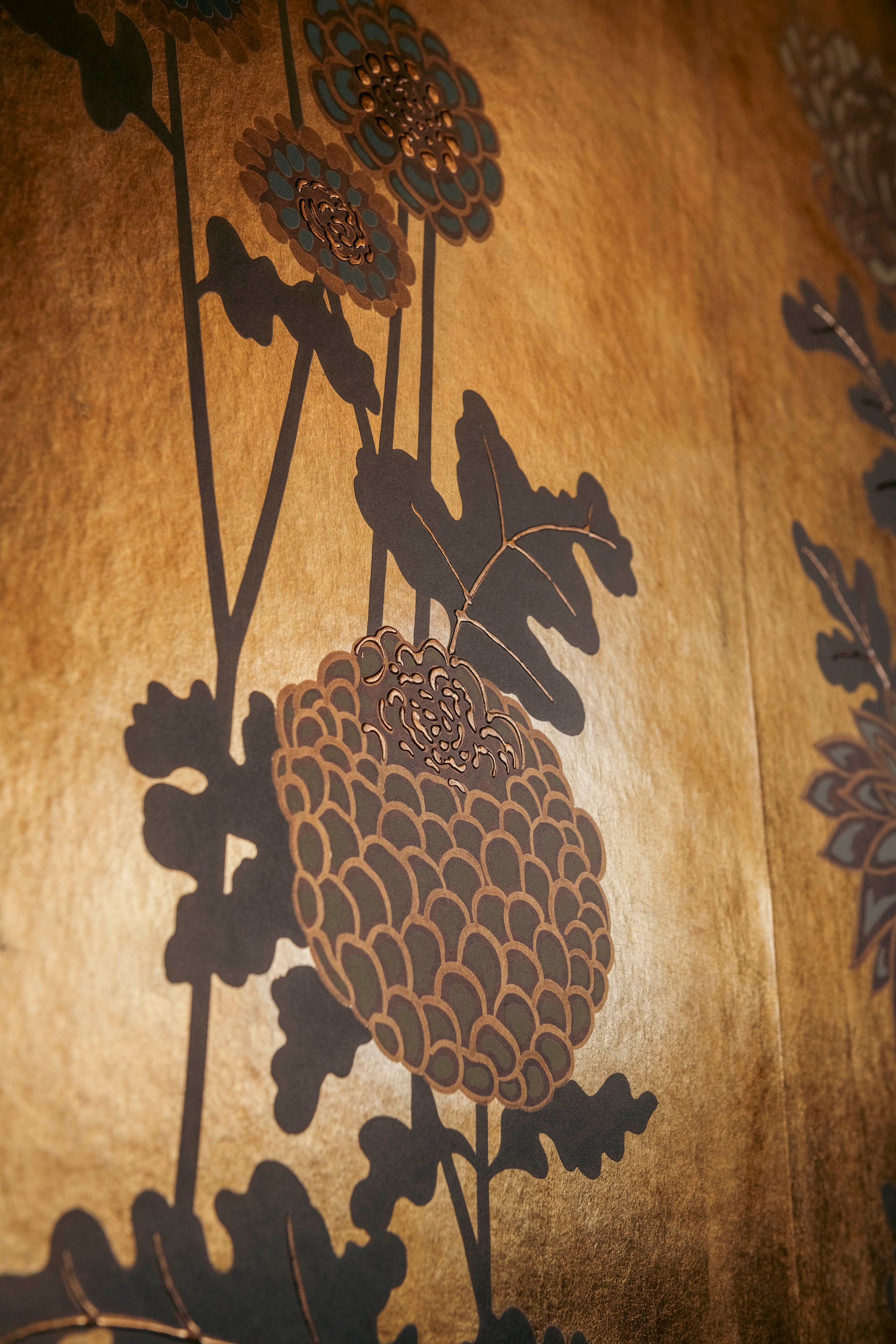 Kiku Garden is an elegant, graphic, and highly decorative wallcovering design inspired by the art of Japan and Europe’s enduring fascination with it. It shares much in common with our Kiku wallcovering—the boldly rendered chrysanthemums, the block colouring—but forgoes the crisp, screen-printed borders of the original. The result is a hugely versatile design that works beautifully in all manner of spaces.