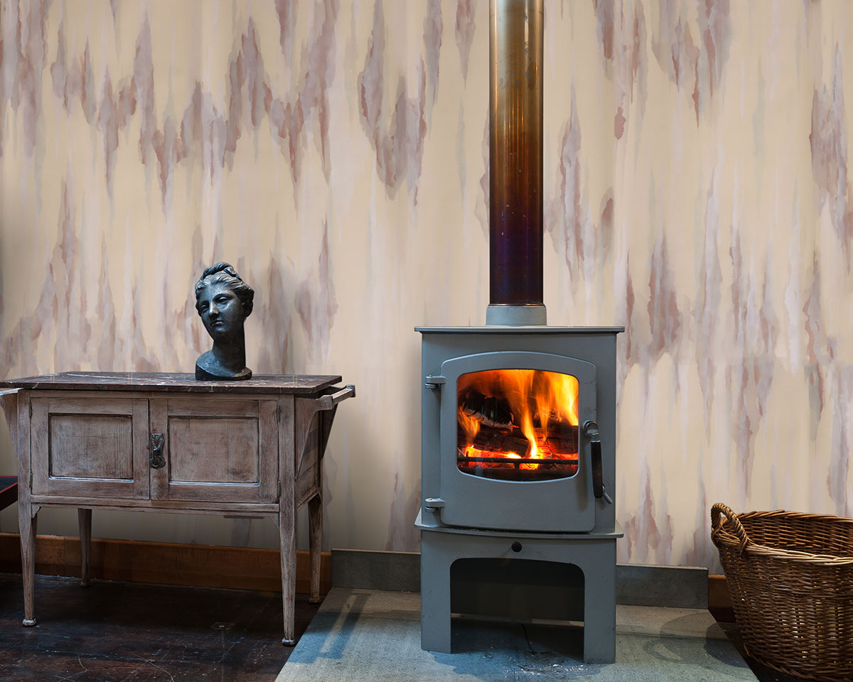 Inspired by the Lava glaze of mid-century German ceramics, a blend of pigments and metallic washes are brought together to create this soft and abstract design. The negative space of this design is key to the success of its composition; the interplay of raw silk and expressive brushwork.