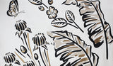 Datura’s palette emphasises the flowing, calligraphic style of the painted lines, which stand forward against the background of White Silk. Highlights in taupe and gold lend a sumptuous feel.