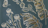 Los Alamos is a luxuriant, graphic, stylised scenic depicting the vivid fauna of California. Bold painted colours provide a striking contrast with the sophisticated silk grounds.