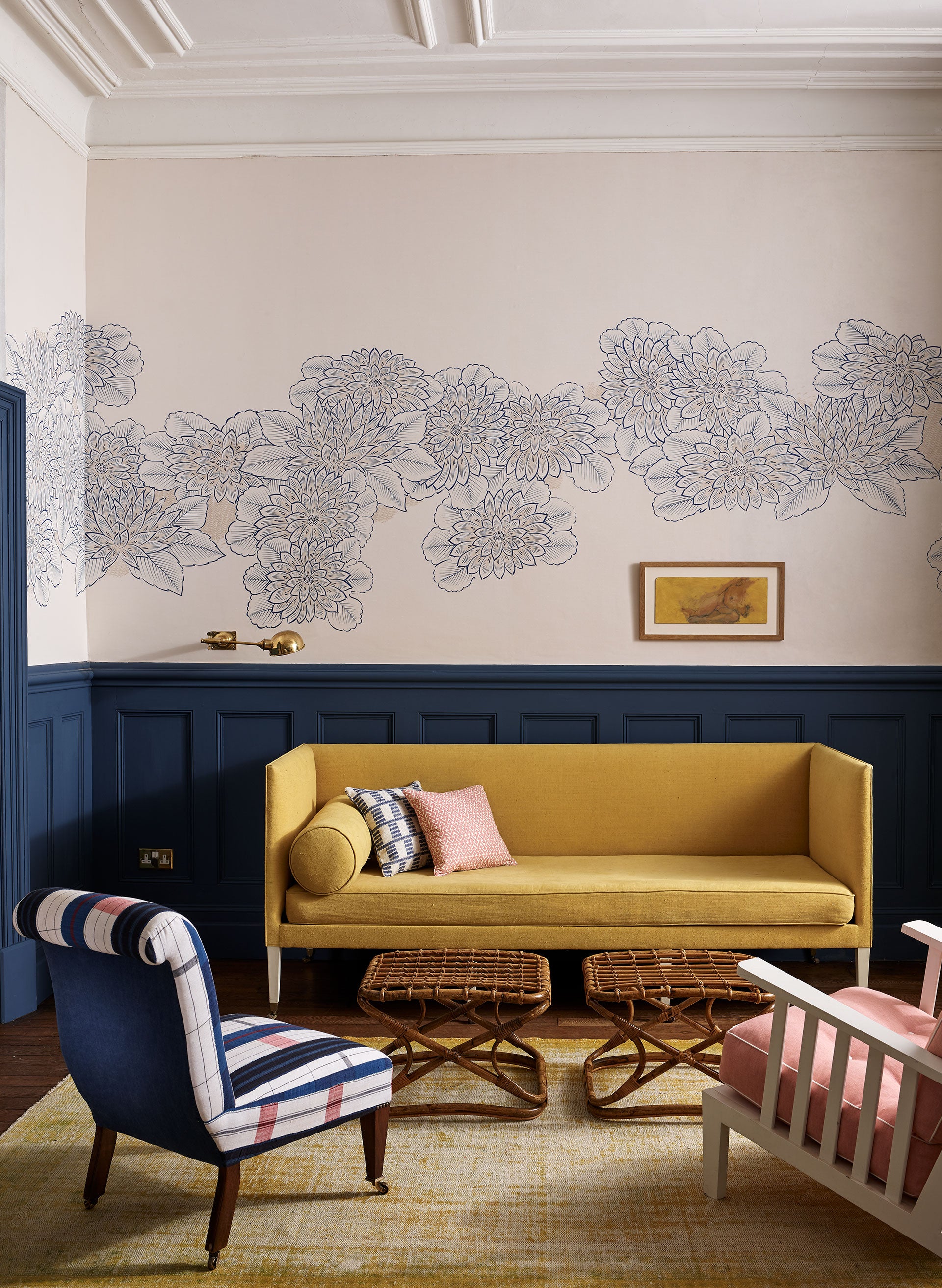 Use it in Honeyglow above a dado rail to introduce considered decoration to a simple sitting room or bedroom scheme, or let it hug the skirting in Chiffon for an eye-catching effect in a dining room or hall.