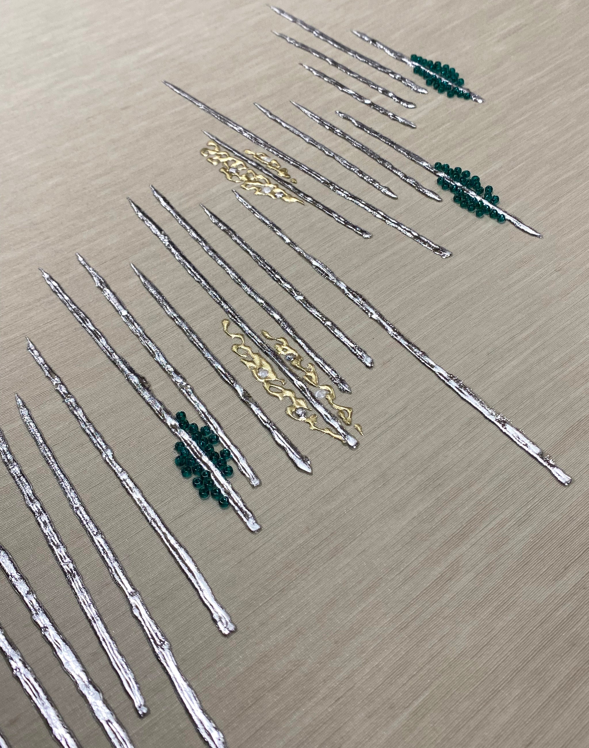 STANDARD: Hand foiled and embellished on silk with paper backing