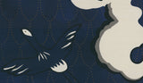 Oceanic was inspired by a 19th Century Japanese woodblock print. The stylised birds and organic swirling waves are enlarged to a super scale graphic and executed on shimmering hand-made grounds.