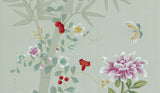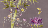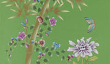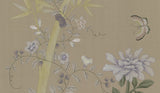 Each painted panel begins its life as a length of raw silk which we size with a natural adhesive so that it receives paint without bleeding. We often brush the silk with iridescent pearl washes to add further lustre before backing with traditional rice paper. This forms the extraordinary canvas on which our artists work their magic.