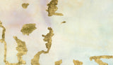 The wet-dyed silk background features multi-layered ghostly swirls and washes, creating an intriguing contemporary aesthetic. Golden metallic markings define the design, each carefully applied in homage to Gustav Klimt's Tears of Freya.
