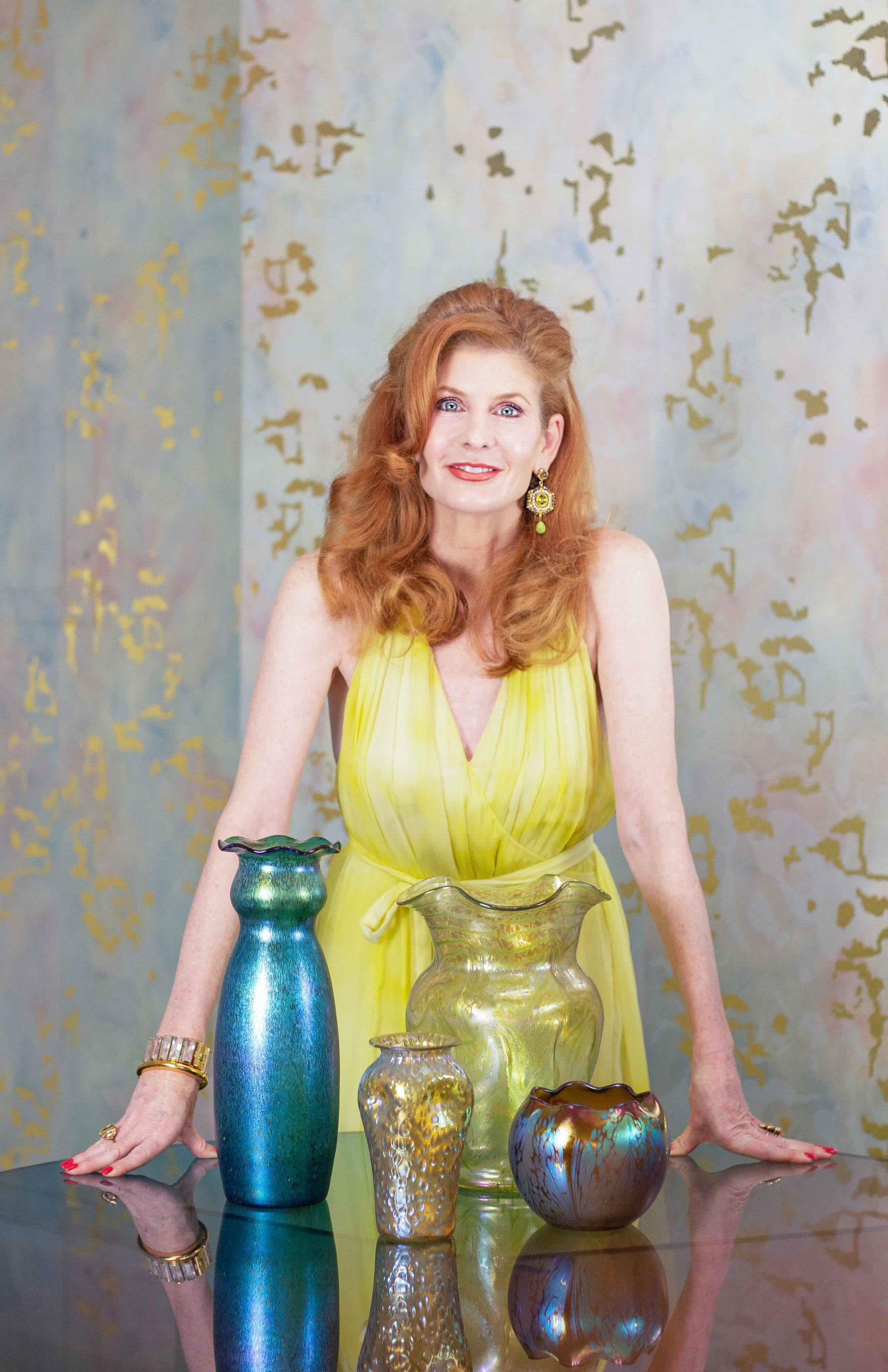 Phantasm embodies our shared passion for innovative craftsmanship and materials. Its painterly, abstract pattern draws inspiration from iridescent Loetz glass, Tiffany's renowned turn-of-the-century rival. As light moves across Loetz glass, colors shift and blend continuously. Phantasm captures this dance of light and colour.