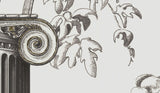 Portofino is a scenic mural rendered in graphic simplicity featuring a bucolic scene beyond the archways and columns of a traditional Italian loggia.