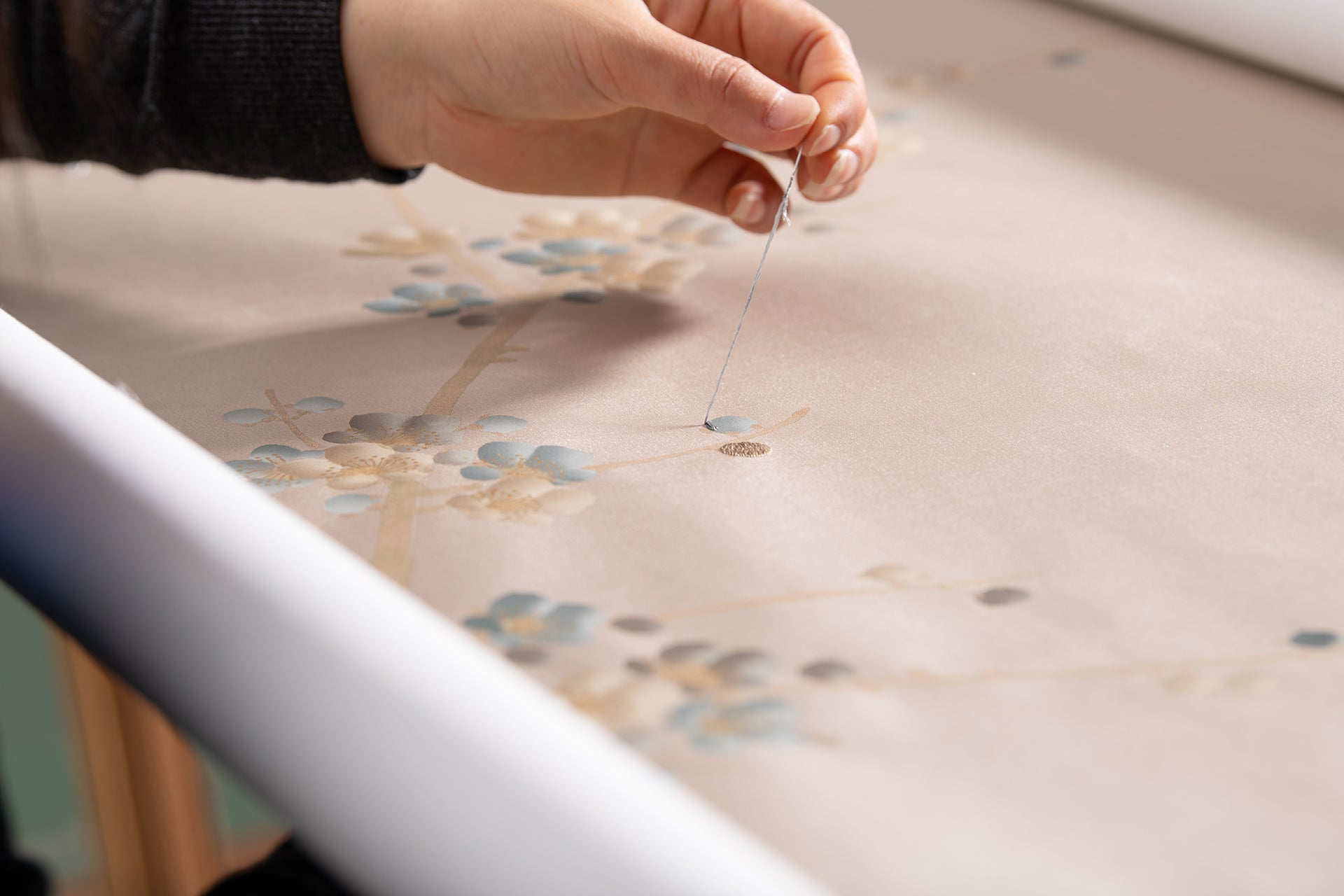 Dove Grey is a celebration of sheen and shimmer, the only colourway in our Prunus collection to feature both metallic branches and trunk. As such, it uniquely captures the natural light in any space.