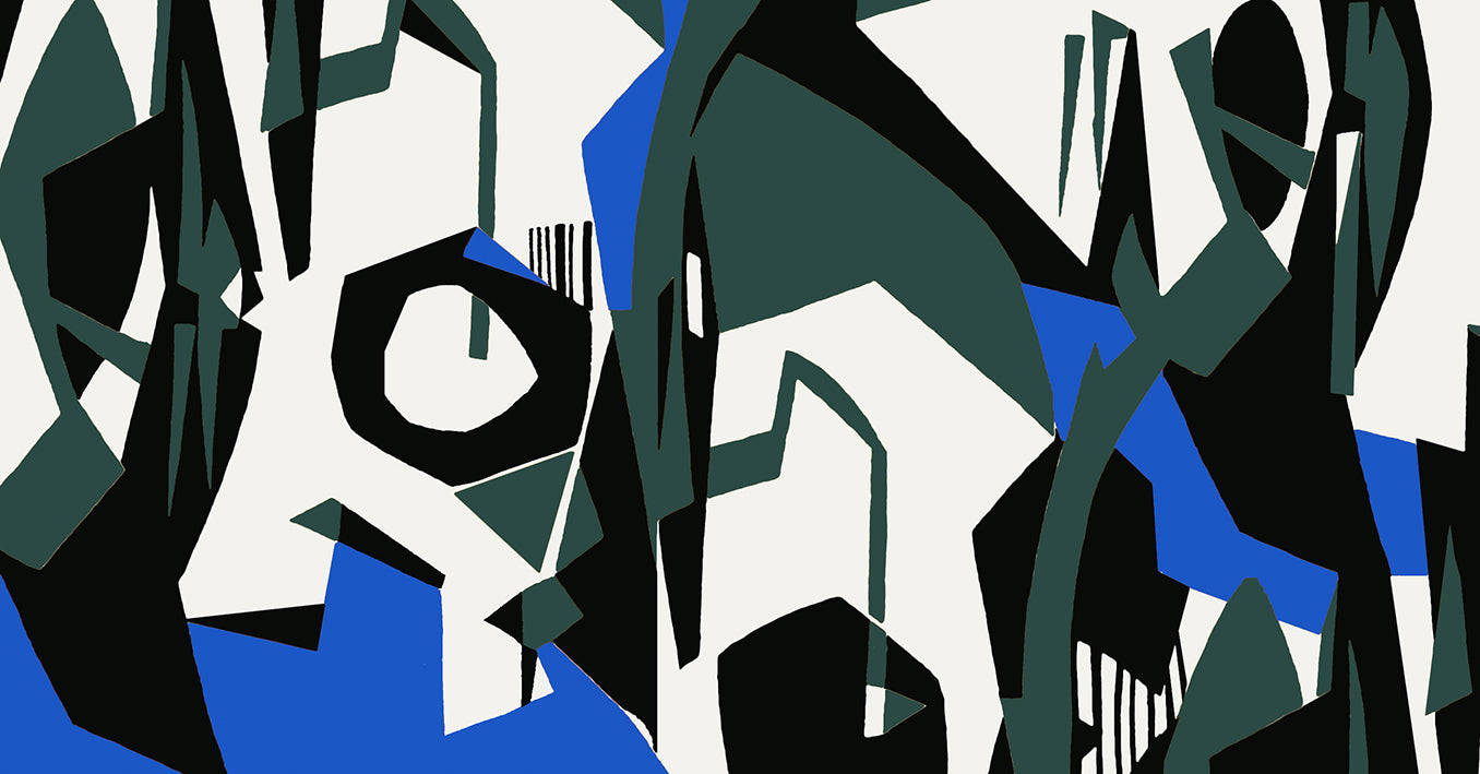Verde enjoys a palette of jet black, electric blue and deep green; the subtle texture of our Hand-Brushed Linen gives a beautiful mottled effect to areas hand-painted in white.