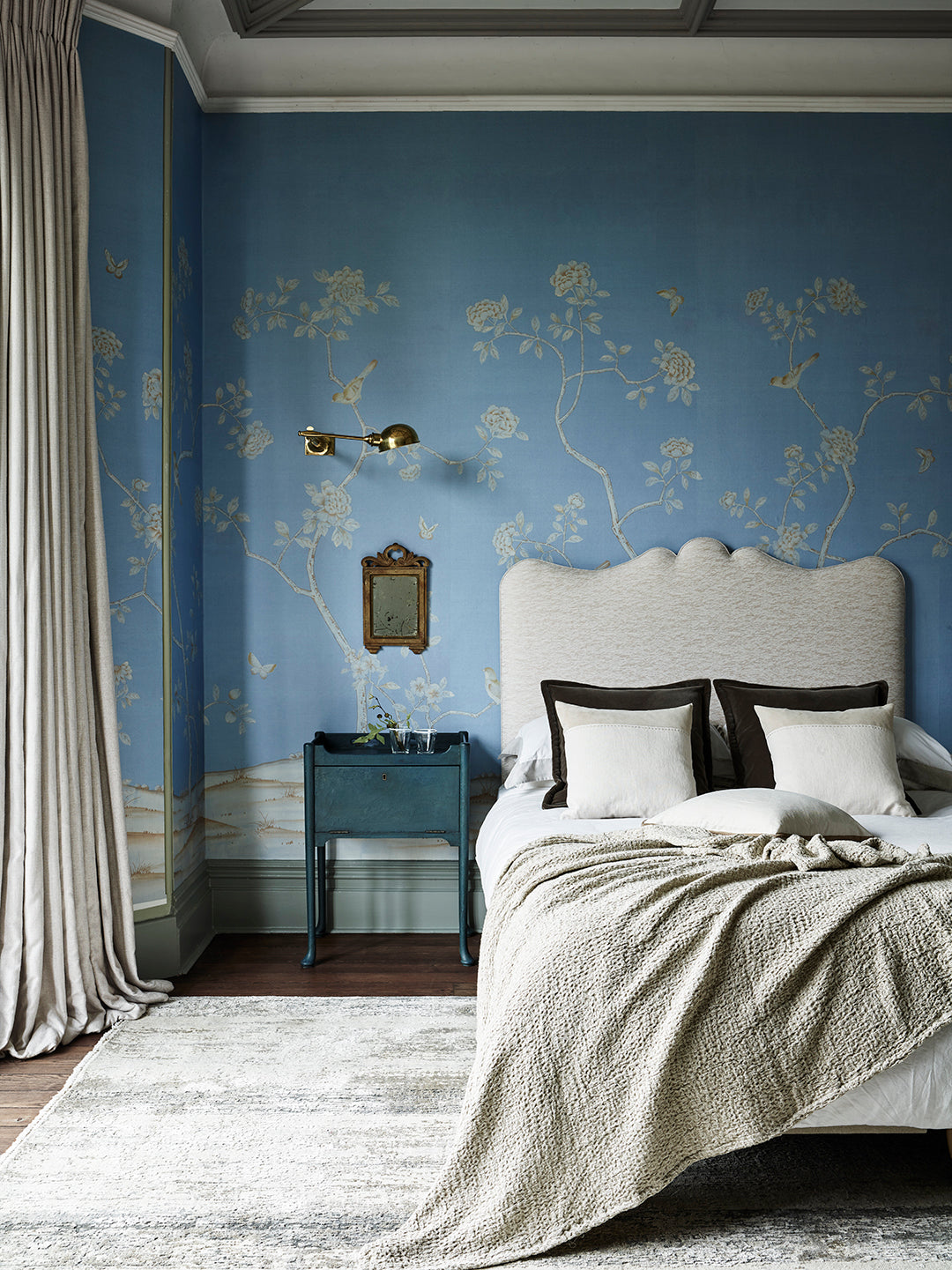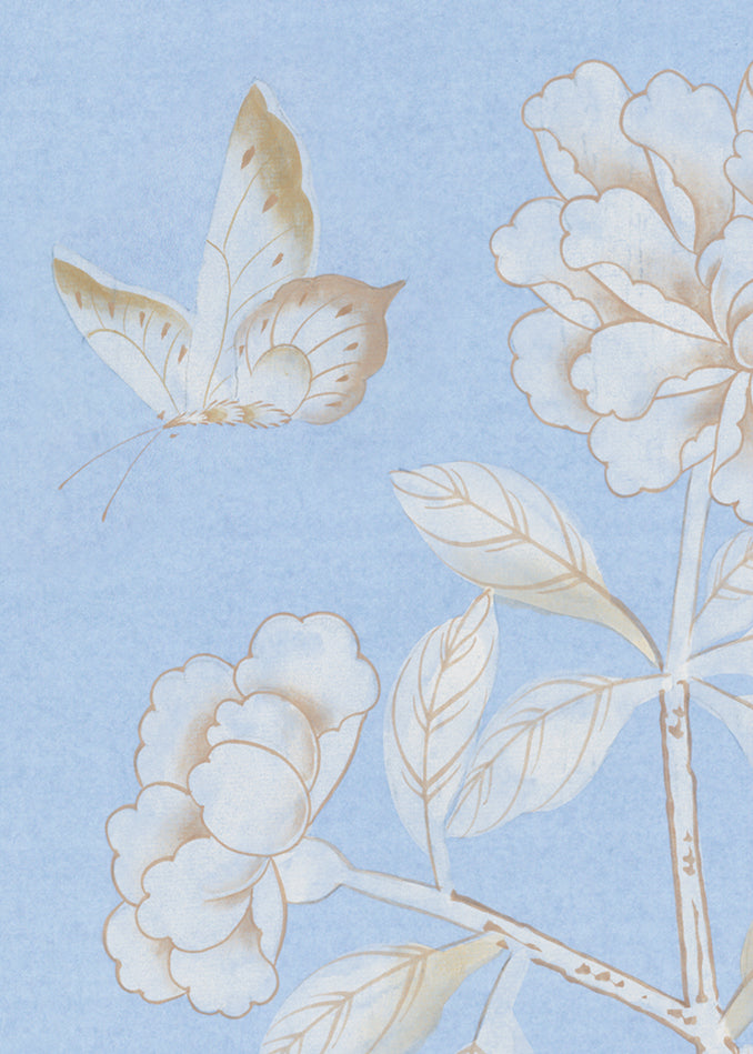 Rocaille has many elements drawn from the ancient craft of Chinese painting. A minimalist Chinoiserie, lightly decorous with large peonies and birds, this understated pattern fills the walls with beauty and detail.